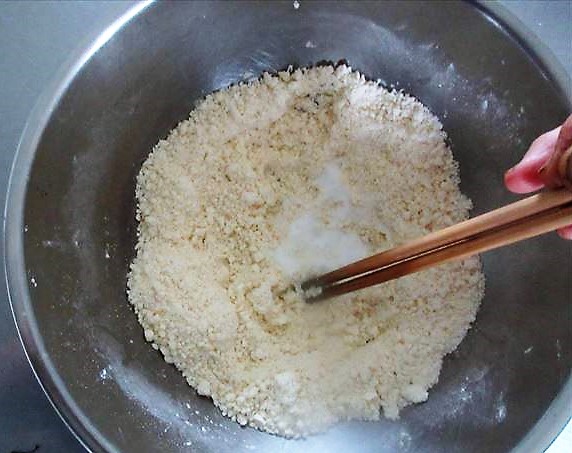 - Abra o meio do No.1,(1), e coloque o A,(2). Misture aos poucos com um [Hashi](3), e junte em um todo(4).
