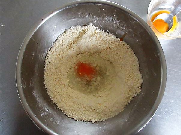※Quando for preparar a massa podre, será usado 0.5 da gema e o restante será usado para o Bolo de queijo assado. As claras de ovo não utilizadas também são usadas para Bolo de queijo assado.