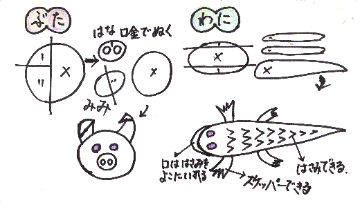 - 成形するとき、生地をあまり細かく分けると、仕上がりのパンが硬くなります。大きめに分けて、動物の形を考えてください。