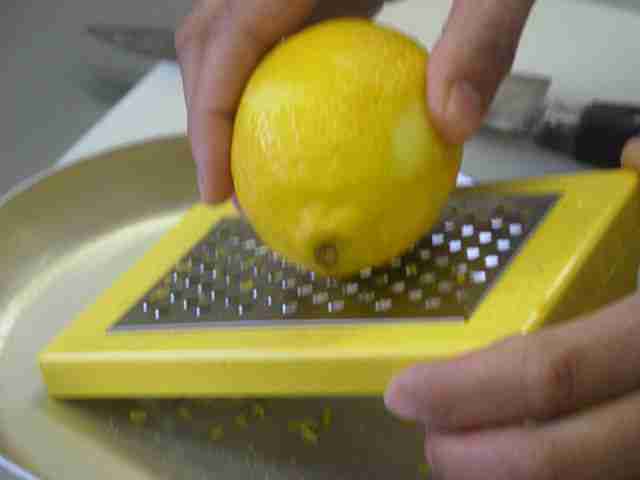 - レモンの皮は、黄色の表皮だけを使います。白いワタの部分が入らないようにしてください(4)。