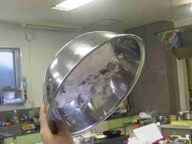 - ボールに、逆さにしてもこぼれないようになるまで、しっかり泡立てます。