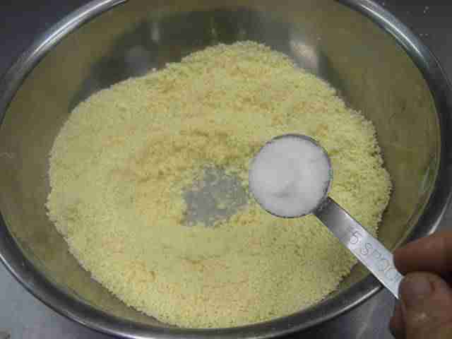 - 薄力粉は、直径30cmくらいのボールにふるいます。