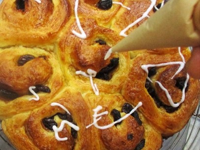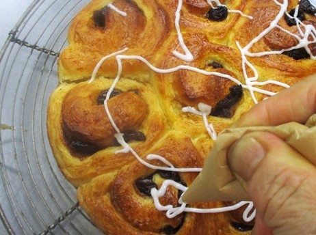 - 焼き上がったパンの熱が完全に冷めたら、アイシングで線描きをして、仕上げる。