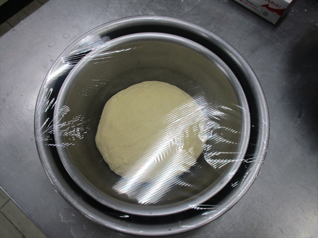 - 大きいボールに小さいボールが浮かない程度のぬるま湯を入れ、ラップを張って、発酵させる(目安2倍)。