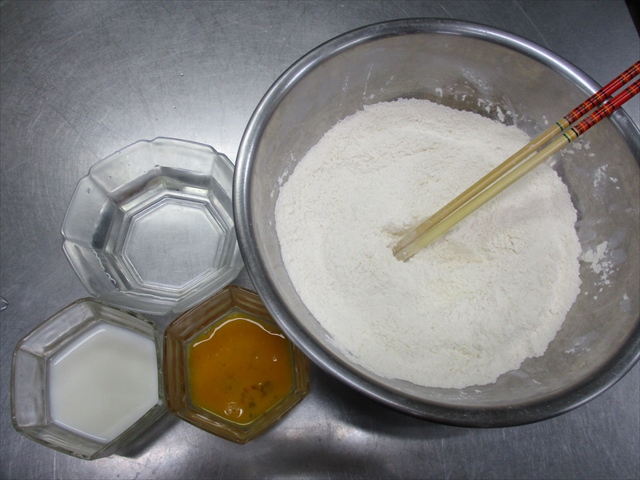 - まとまったら、台の上に取りだし、更によくこねる(目安5分)。