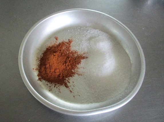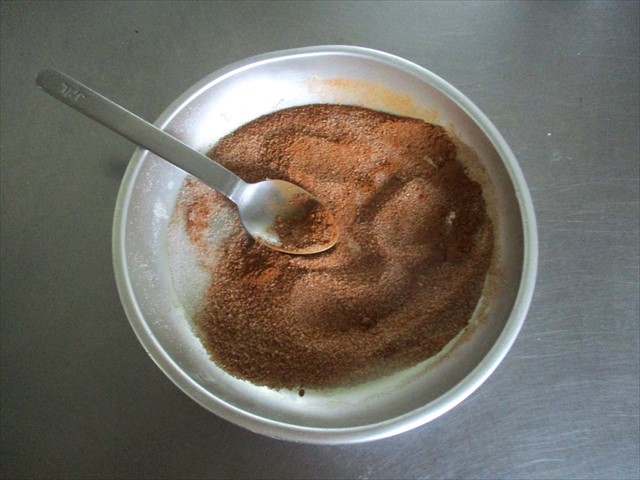 - グラニュー糖にシナモンパウダーを加えて混ぜ、「シナモンシュガー」を用意する。