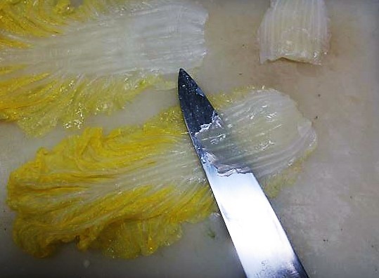 白菜の長さと厚みをそろえる