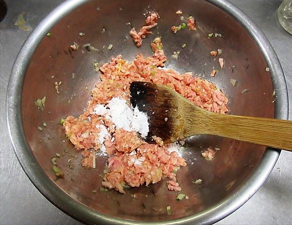 白菜の内側に片栗粉を振る