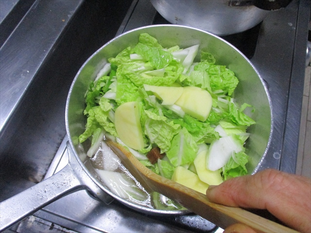 白菜、ポテトも軽く炒め、ゆっくりと煮込む