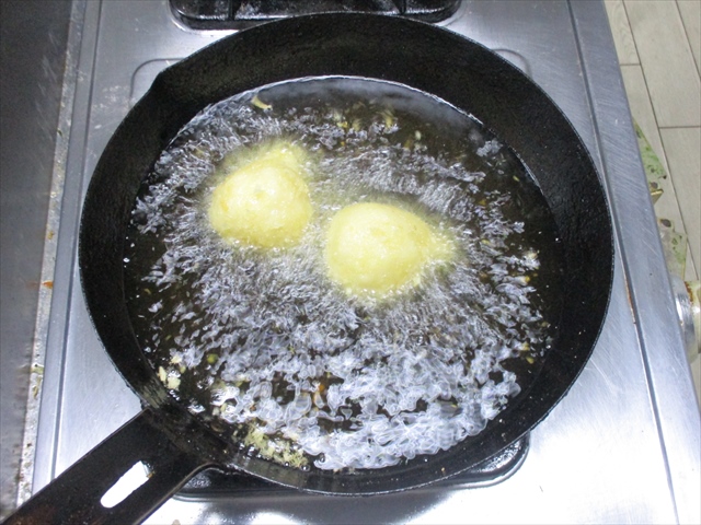 - 揚げる温度は180℃くらいで、全体に薄っすらと茶色になるまで揚げます。