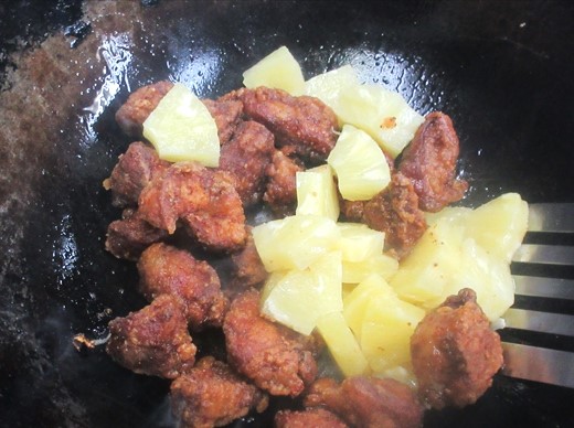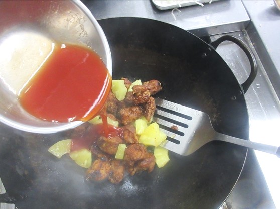 - 5に豚肉、パイナップルを加えてあんをからめる。