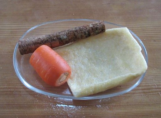 - Cozinhe o [Renkon] em água fervente com vinagre e tire-o logo da água quente.
