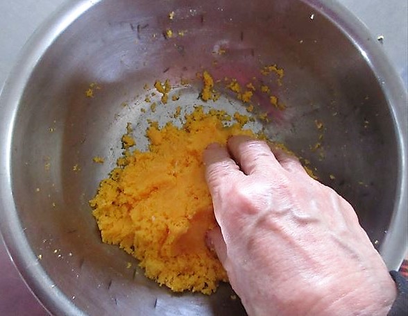 Misture bem as gemas e as claras com suas mãos