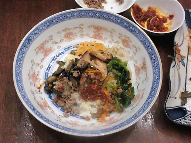 ・Arroz japonês cozido para 6 pessoas ・Um pouco de cada tipo de [Namuru] Mame-moyasi, nabo, espinafre, cenoura, berinjela, shiitake ≪Soboro de carne(temperada e soltinha)≫ ・150g de carne de vaca moída ◎A 1.5 colheres de sopa de [Shoyu] 1 colher de sopa de açúcar 1/2 colher de chá de [Mirin] 1/2 colher de chá de [Sakê] Uma pitada de pimenta do reino 1 colher de chá de alho ralado 1 colher de sopa de óleo de gergelim 1 colher de chá de gergelim ≪Molho≫ ・2 colheres de sopa do líquido do [Soboro] que sobrar da panela ◎B 2 colheres de sopa de [Kochujan = Misô coreano ardido) Um pouco de cebolinha 1 colher de chá de [Shoyu] 1 colher de chá de açúcar 1 colher de chá de gergelim