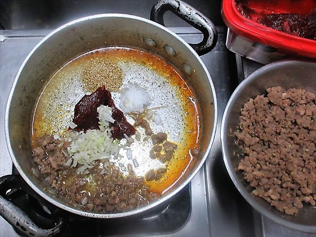 - Monte na tigela a carne do 2(1). Adicione o B no líquido do cozimento e leve ao fogo(2). Cozinhe um pouco por alguns segundos(3) e coloque em um outro recipiente(4).