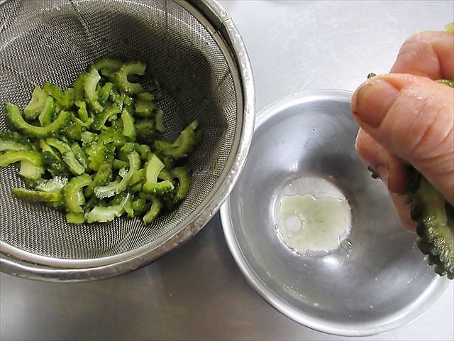- O Nigauri deve ter 2 ou 3 mm de espessura para preparar o Goya chanpuru, que não é muito amargo, mas para o tsukudani, que é cozido e lentamente fervido, deve ser um pouco mais grosso, cerca de 5mm de espessura.