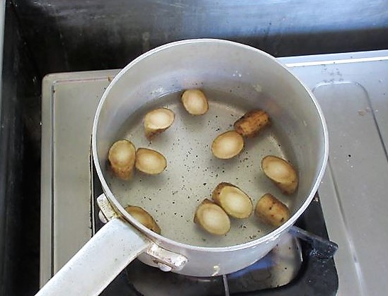 - A gosma do inhame pode ser facilmente removida caso seja fervido, mas você não acha que um pouco de gosma também faz parte do gosto de Tikuzen-ni?