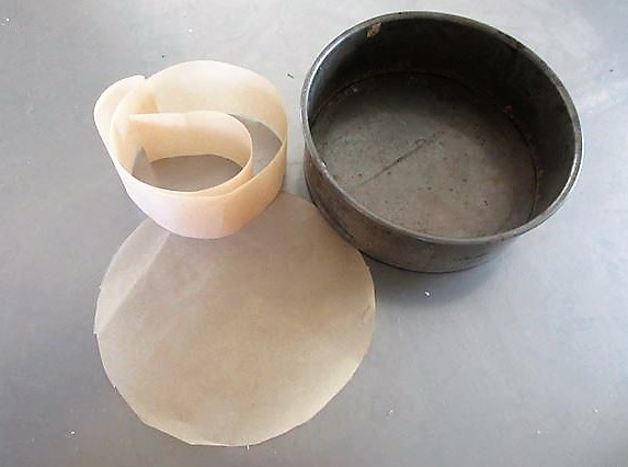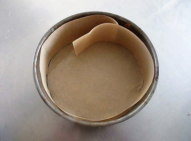 - Corte o papel manteiga no tamanho certo da forma e depois forre.