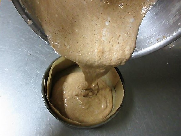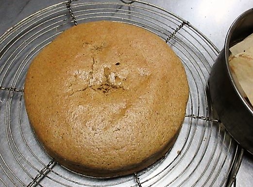- Corte a massa do bolo em 3 discos na horizontal(1) .
